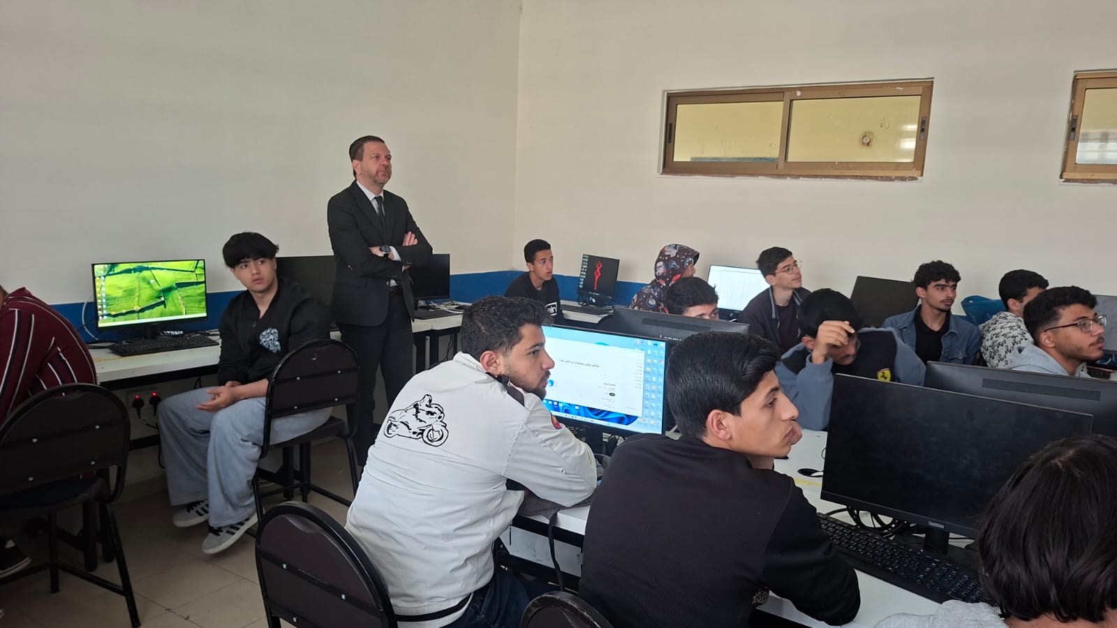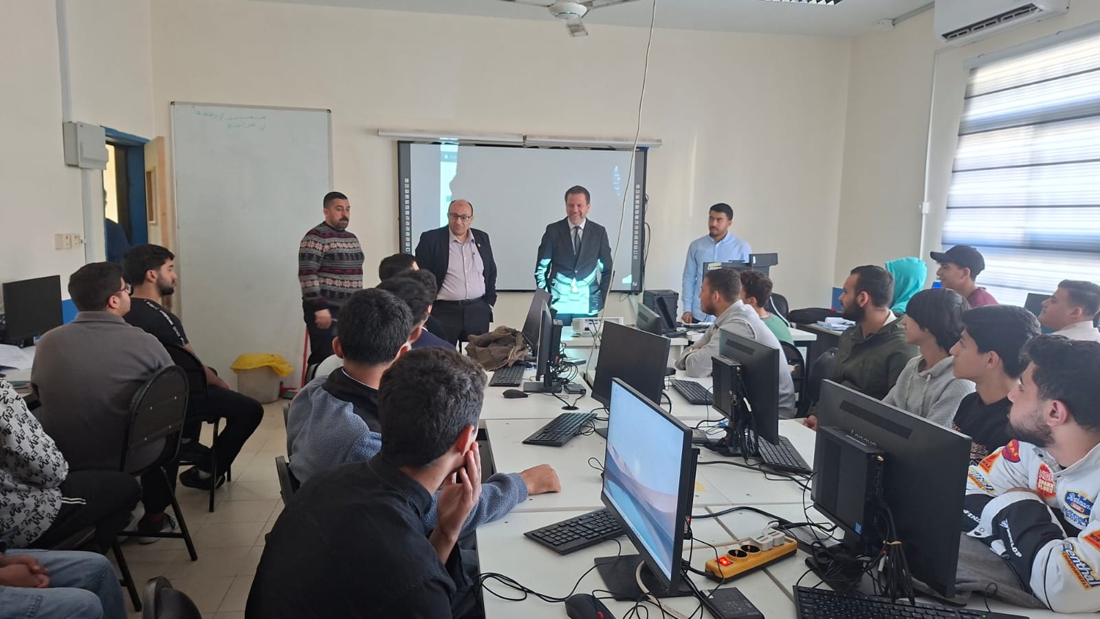 وشملت الجولة قسم تكنولوجيا المعلومات، حيث تابع التدريب العملي بإشراف المدرب المتعاقد الأستاذ أحمد بني مصطفى، مشيداً بالمستوى المتقدم الذي أظهره الطلبة في المهارات الرقمية، وقدرتهم على توظيفها في تطبيقات عملية.