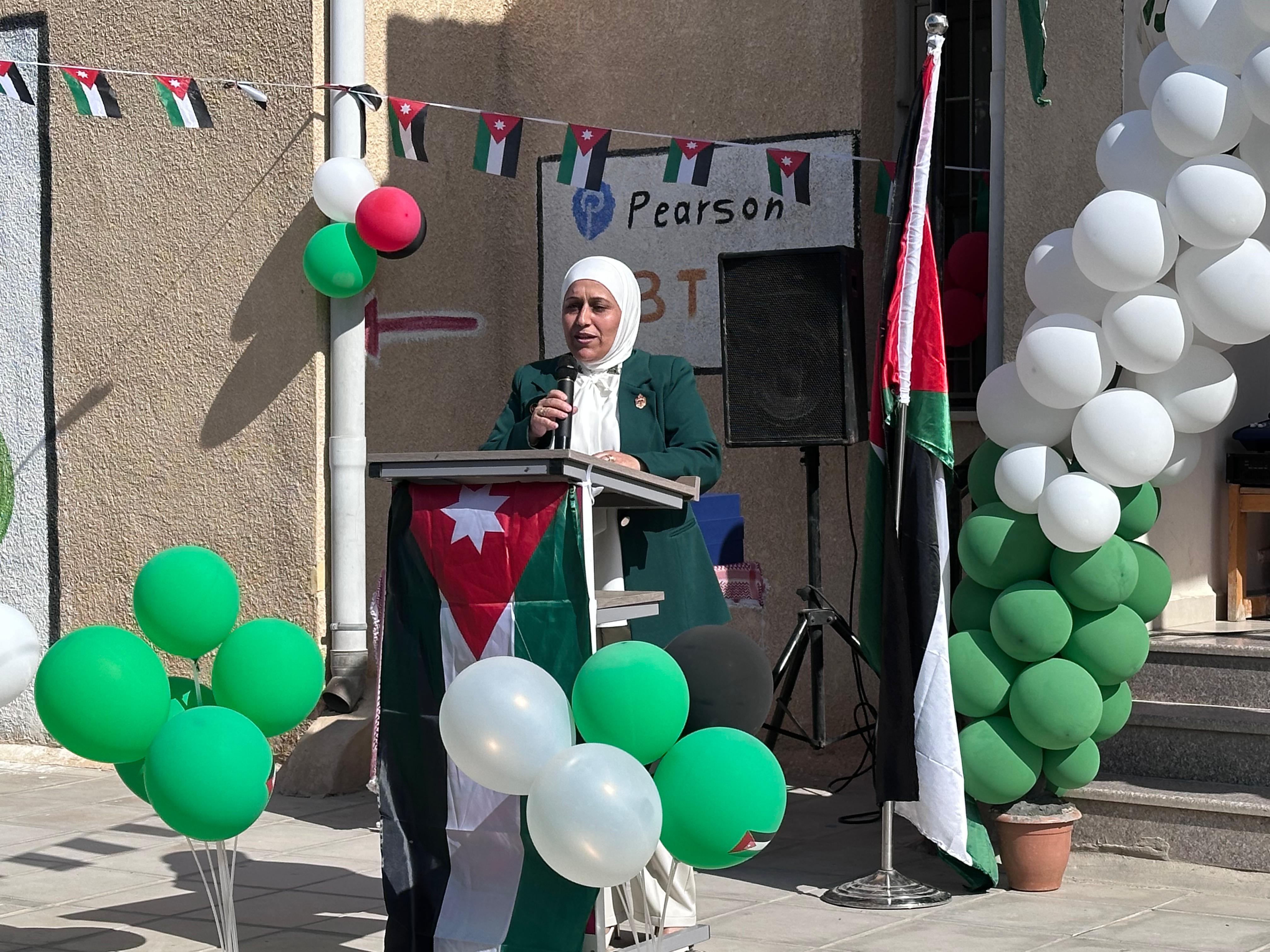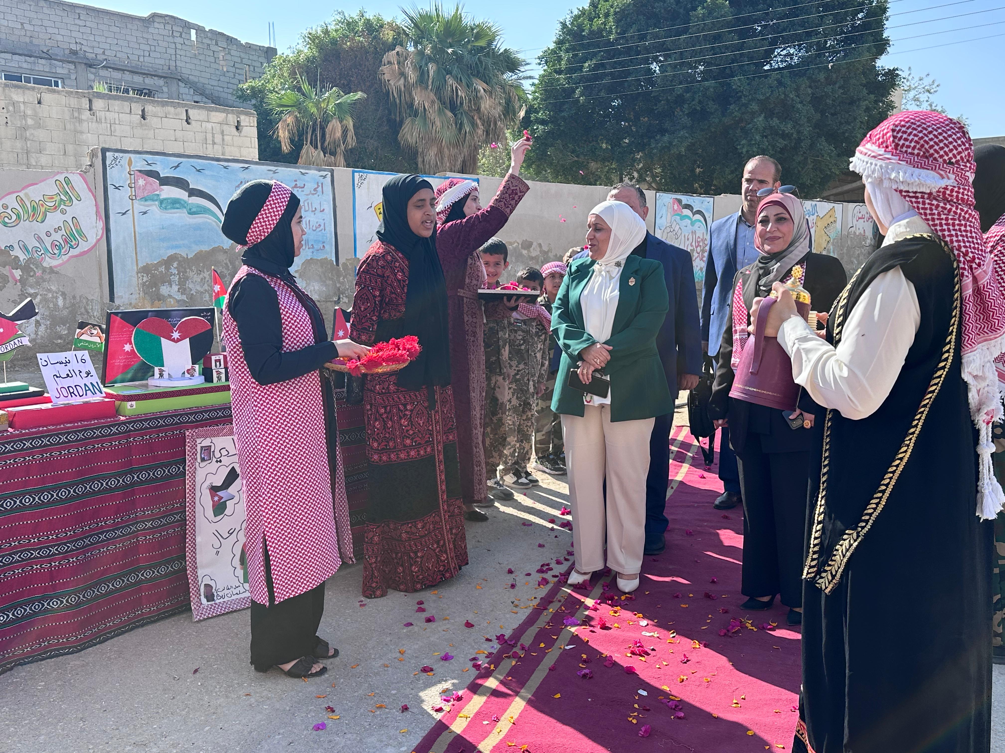 واستُهلّ الاحتفال بكلمةٍ ألقتها مديرة التربية والتعليم الأستاذة لبنى فرحان العدوان، تناولت فيها دلالات يوم العلم ومكانته في الوجدان الأردني، مؤكدةً أن راية المملكة ترمز إلى التضحيات والرسالة الهاشمية الخالدة، وأن اعتزاز الأجيال بعلمهم، وانتمائهم خيرُ، وفاءٍ للأرض والقيادة.
