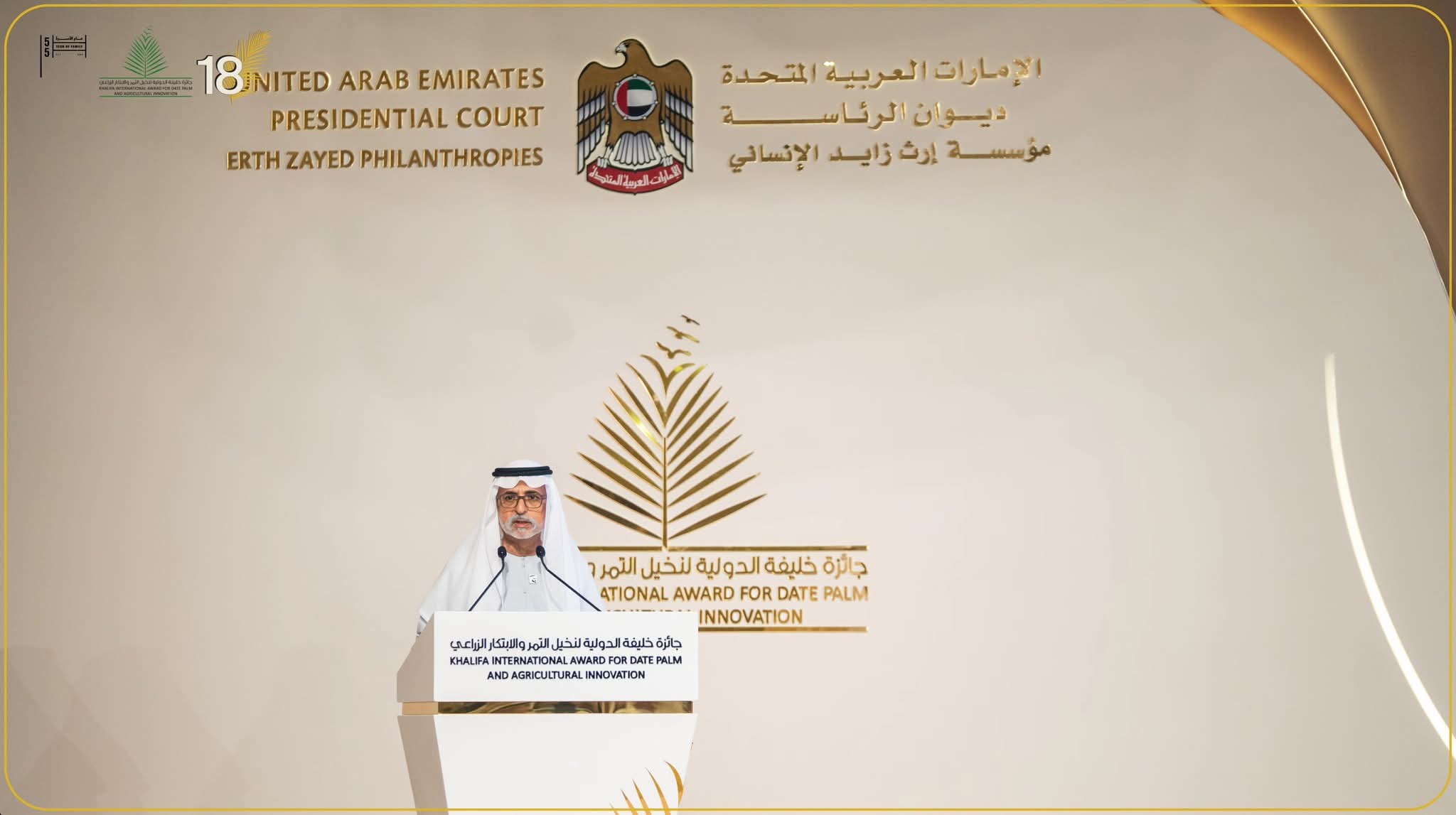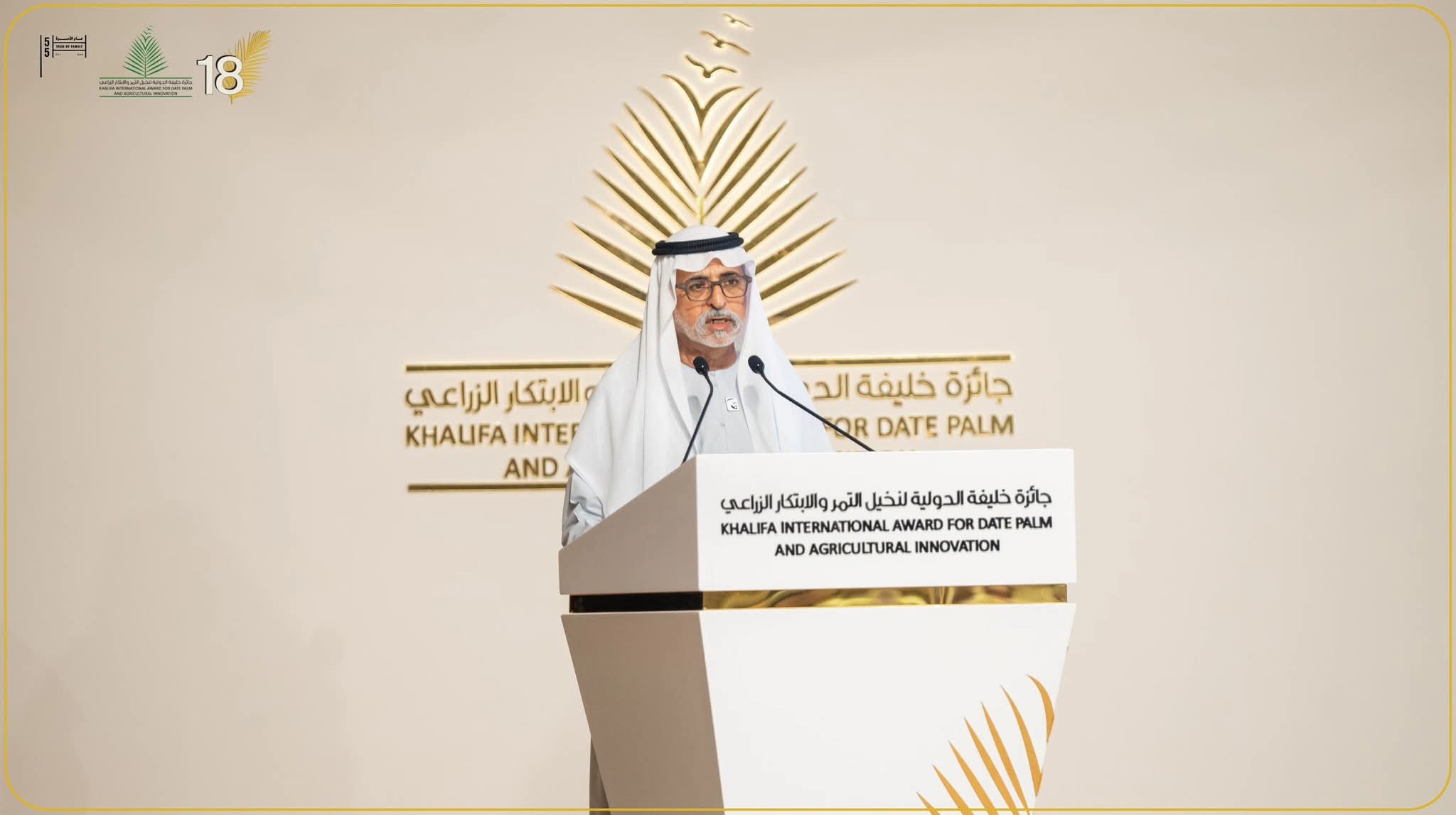 أبوظبي، الإمارات العربية المتحدة...تحت رعاية سمو الشيخ منصور بن زايد آل نهيان، نائب رئيس الدولة، نائب رئيس مجلس الوزراء، رئيس ديوان الرئاسة، شهد معالي الشيخ نهيان مبارك آل نهيان، وزير التسامح والتعايش، رئيس مجلس أمناء جائزة خليفة الدولية لنخيل التمر والابتكار الزراعي، التابعة لمؤسسة إرث زايد الإنساني، يوم الثلاثاء 28 ابريل 2026 حفل تكريم الفائزين بالجائزة في دورتها الثامنة عشرة 2026، بحضور معالي الدكتور عبد الحكيم الواعر، المدير العام المساعد لمنظمة الأغذية والزراعة التابعة للأمم المتحدة، الممثل الإقليمي للشرق الأوسط وشمال افريقيا (FAO-RNE)، كما شهد حفل الافتتاح حضور أكثر من 30 وزير ووكيل وزارة للزراعة من الدول المنتجة للتمور، إلى جانب حضور عدد من أعضاء السلك الدبلوماسي بالدولة وصل الى 60 سفير منهم 35 من السلك الأجنبي و 25 من السلك العربي، ومدراء 06 من المنظمات الإقليمية والدولية، وأعضاء مجلس الأمناء، والفائزين والمكرمين بالجائزة وحشد كبير من المختصين والمهتمين بزراعة النخيل وإنتاج التمور والابتكار الزراعي.