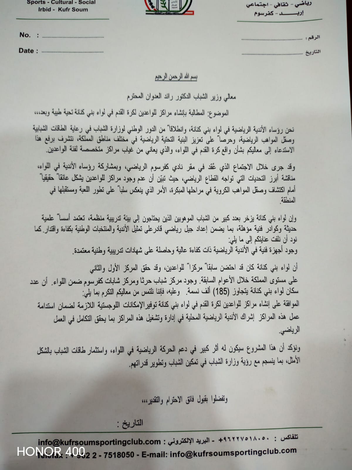 كما تم التأكيد على أن لواء بني كنانة يزخر بمواهب كروية بحاجة إلى رعاية مبكرة، وأن إنشاء مركز للواعدين بات مطلباً ملحاً لضمان تطوير هذه الطاقات وصقلها بالشكل الصحيح.