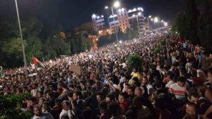نيروز الإخبارية : نيروز الاخبارية : خلال تجوال كاميرا "نيروز الاخبارية"لتغطية احتجاج الدوار الرابع التقطت صورا تظهر مدى عمق العلاقه الأخوية المعتاده مابين المحتجين ومختلف الاجهزة الأمنية وخاصه لواء الصحراء كانت المحبة والروح الوطنية تجمع الطرفين في صورة حضارية رائعه نادرا مانشاهدها حتى في أعظم الدول التي تدعي الديمقراطية  محتجين يهتفون ولواء الصحراء والأجهزة توفر الحماية والأمن لهم مشهد تراجيدي معبر نعم الأردن بخير مهما كانت التحديات والصعوبات مادام فيه رجال كهولاء؛ بكم ينهض الأردن وبكم تكبر عزائم الرجال الأوفياء.